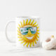 Relájate con esta taza de verano que tiene un sol sonriente con gafas frescas. En el otro lado de la taza hay una leyenda que dice "Salve este verano". Puede cambiar o quitar la leyenda haciendo clic en Personalizar esta plantilla. Un regalo perfecto para el amante del verano en su vida.