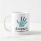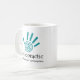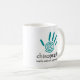 Esta taza de la quiropráctica ofrece una impresión y un texto espirales verde azulados de la mano que diga la "quiropráctica - salud sin una prescripción."