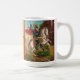 Crédito de la imagen: St. George rescata a la princesa de un temible dragón, un cromolitografo de tamaño excesivo (No. 56) impreso en Alemania, editorial original desconocido, de la colección privada del diseñador de ephemera religiosa. + El formato extra-grande de la imagen sugiere que fue impresa para su inclusión en una suntuosa cartera de finales del siglo XIX Vidas de los Santos. El margen inferior tiene el nombre del santo en francés (ST. GEORGES), alemán (HLG. GEORG), inglés (ST. GEORGE), español (S. JORGE), italiano (S. GIORGIO) y en alfabeto cirílico con varias letras arcaicas que no se pueden reproducir aquí. Baste decir que el cirílico transliterado en la escritura eslava 'moderna' de la Iglesia dice С в я т Г ы ・ Bursniht BurnBurnBurnBurn (o, más coloquialmente, el victorioso). En la Ortodoxia Oriental, este título honorífico significa la victoria de San Jorge sobre el mal y su triunfante martirio. + Fiesta: 23 de abril