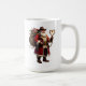 This image portrays a sturdy, Western-style Santa Claus ready for a rugged delivery. He wears a cowboy hat, a long red duster coat, and boots, with a large, overflowing sack of presents slung over his back. He holds a piece of glowing rope tied into a heart shape, offering a warm, trail-rider take on the holiday. His kind eyes and big white beard complete this unique and charming Christmas figure.
