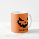 Esta espeluznante taza naranja de Halloween presenta un genial sonriente Jack O Lantern y tu propio texto personalizado. El favor de un partido personalizado dulce y temible.