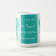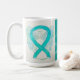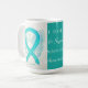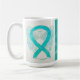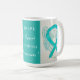 Scleroderma utiliza una cinta de sensibilización verde azulada para mostrar su apoyo a su conciencia. Esta taza de personalizado muestra pinturas artísticas de ángeles de la banda de conciencia verde azulada con el mensaje "¡Espero y apoyo a la conciencia de escleroderma!" La conciencia verde azulada personalizado guardian angel ribbon imagen tazas de café o tazas puede ser personalizada con mensajes personalizados para hacer grandes causas para recaudar fondos, regalos de taza de concientización u otros eventos especiales o causar ocasiones de apoyo. Haz tus propias palabras personalizadas para un mensaje personal de esperanza y apoyo para compartir!