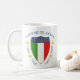 ¡Forza Italia! ¡Forza Azzurri! Italia ganó el mundial por la 4ta vez. Muestre su orgullo con una taza elegante que ofrece un scudo de Italia (escudo) y los cuatro años del triunfo enumerados.