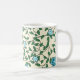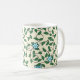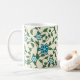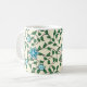 Seamless floral pattern with blue flowers, green leaves, and twisting vines on a light beige background. The design is lively and decorative.