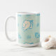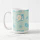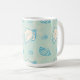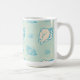 pattern with marine seashells and starfish drawn in delicate blue line art on a deep ocean background.