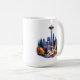 Esta taza de café de cerámica se muestra en una hermosa acuarela de arte de la silueta de Seattle. Elige otro estilo de taza o compra tal y como está. Imagen con licencia