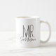 Diseño de tipografía minimalista y manuscrita personalizado con Sr. y su apellido o cualquier otro texto personalizado. Haga clic en Personalizar para cambiar las fuentes y los colores y agregar su propio texto y fotos. Agregue un nombre diferente o un mensaje completamente personalizado para crear el regalo perfecto y único para alguien que ama. Las tazas con monograma de Sr. y Sra. son una excelente idea de regalo de compromiso para parejas o regalos de boda personalizados para la novia y el novio.