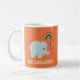 Una dulce taza motivacional de un adorable elefante bebé siendo creativo pintando un arcoiris. Esta taza está diseñada por Eggplant y Purple.