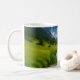 Un riachuelo montañoso transparente serpentea a través de prados verdes alpinos hacia picos nevados, una taza cerámica enredadera, naturaleza perfecta y un regalo de viaje. Sienta una fresca calma de montaña con cada sorbo. Las hierbas iluminadas por el sol bordean una corriente de cristal que lleva a los ojos a cumbres brillantes y nevadas: aire fresco, color vívido y foco silencioso en una escena limpia. Ideal para las mañanas atentas, para relajarse en el escritorio o para regalar a los excursionistas y amantes del exterior que ansían las vistas al alpino.