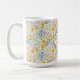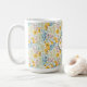 Hermosas flores primaverales Shabbat Shalom mug con texto en hebreo e inglés. Añada la cubierta y la corona de mesa de estilo rival para completar la decoración de la mesa de Shabbat.