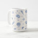 Adorna su mesa con encanto costero usando esta impresionante taza de café, con un divertido patrón de conchas marinas, pez estrella y divertidos textos inspirados en la playa. Los tonos azules de zafiro sobre un fondo opcional de marfil evocan un ambiente relajado de verano, casa de playa. Ya sea decorando una casa de playa o dando tranquilidad a la decoración cotidiana, este diseño le dará calidez y carácter. Busque ID918 para ver otras opciones de color para este diseño.