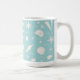 Adorna su mesa con encanto costero usando esta impresionante taza de café, con un divertido patrón de conchas marinas, pez estrella y divertidos textos inspirados en la playa. El blanco marfil, según los colores escogidos (que se muestran aquí en azul verde azulado), evoca un ambiente relajado de casa de playa. Ya sea decorando una casa de playa o dando tranquilidad a la decoración cotidiana, este diseño le dará calidez y carácter. Busque ID918 para ver otras opciones de color para este diseño.