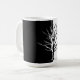 Silhouette Crow o Raven mug. Imagen de Raven o Black Bird en un árbol blanco y negro que puede experimentar con combinaciones de colores para adaptarse a sus gustos. Un pájaro negro encaramado en la taza. Las avenidas, los cuervos y los pájaros negros pueden ser confusos. Elija sus colores, sus fuentes y reorganice los gráficos para que se ajusten a sus necesidades. Copa Raven Bird que es un gran regalo para los amantes de los negros, cuervos y cuervos.