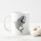 Empieza tu día con un toque de creatividad. Esta taza exhibe una silueta de ballena, elaborada a partir de una escuela de peces pequeños. Hay un rastro de peces nadando en la boca de la ballena, dando al diseño un sentido de movimiento. Es el regalo perfecto para los aficionados a la vida marina, los amantes del café y todo aquel que aprecie la magia submarina con su desayuno matutino.