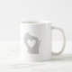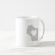 El estado de Wisconsin en gris con un corazón en el medio para simbolizar tu amor por el estado de Wisconsin cada vez que usas este tazón de café del corazón de Wisconsin.