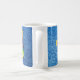 Colorido ícono de tintes de corbata del movimiento de paz de los años 60 sobre un fondo de denim azul. El saludo de dos dedos representa una preferencia por soluciones pacíficas por sobre las alternativas. El tejido psicodélico que se moría de corbata puede ser retro ahora, pero en los años 60 era una declaración de moda hippie. El texto en la taza dice "Paz", pero puedes personalizar con tu propio nombre o decir y cambiar el estilo de letra, tamaño y color.