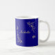 Taza de café única y simple con flores de oro románticas y elegantes y mariposas en fondo azul real