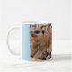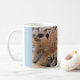 Dos Meerkats muy lindos para saludarte cada vez que tienes un tazón de té o café. Inquisitivos, dulces y fascinantes Meerkats en esta fotografía única. Hace un lindo regalo de diversión para cualquiera que ame los Merkats.