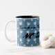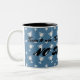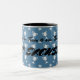 Esta taza se trata de ganar. Tienes que entrenarte duro, tienes que quererlo. El texto envuelto en negro es: "Tren para ganar" y "NO EXCUSAS". O puede escribir en los cuadros para cambiar esto por su propia oferta motivacional, o por ejemplo un nombre. El fondo es azul petróleo, con un patrón de estrellas y trofeos deportivos dispersos de color plateado.