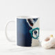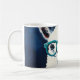 Playful twist to cute animal art and humor with a quirky white llama rocking teal glasses and holding a leafy branch.