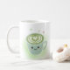 Bring a little happiness to your daily routine with this adorable mug featuring a charming, smiling coffee cup character. Inside the cup, you'll see a lovely latte art heart in a soothing shade of green. It's the perfect gift for coffee lovers, tea drinkers, matcha enthusiasts, or anyone who appreciates cute, kawaii style. This mug is great for a morning brew, an afternoon tea, or as a delightful decorative piece on your desk. Start your day with a smile!