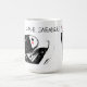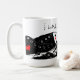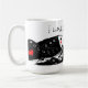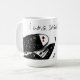 Personaliza el mensaje en esta taza blanca con corazones y zapatillas rojas y negras. Obra de arte Copyright C. McGuire.