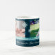 Feliz personalizado de Navidad, tazón fotográfico en elegantes tonos azul verde azulado y turquesa en un delicado patrón de copos de nieve con texto de personalizable y foto, perfecto como regalo de vacaciones.