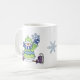 Hombre de nieve y taza de copos de nieve. Personalizar con su propio texto.