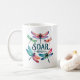 Una hermosa y colorida libélula acompañada de la frase motivacional "Soar High". Esta taza edificante simboliza el coraje, la libertad y el crecimiento personal. Un regalo ideal para soñadores, graduados, espíritus libres y todo aquel que persiga sus objetivos. Perfecto para cumpleaños, graduaciones, ánimo y grandes hitos de la vida.