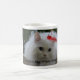 Sombree el gatito blanco con una flor en su cabeza;) sorbo su bebida preferida mientras que mira su gatito preferido