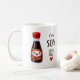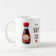 Un diseño lindo y juguetón con una sonriente botella de salsa de soja con el juego de palabras "I'm Soy Soy Into You". Perfecto para una taza para disfrutar de sus bebidas favoritas. Ideal para enviar un mensaje dulce y peculiar a alguien especial o como regalo único.