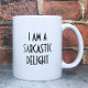 Maldición del café audaz y descarado con la frase "Soy un destello sarcástico" en una letra juguetona. Perfecto para todo aquel que ame el sarcasmo, el humor seco y una buena cafeína. Un regalo divertido para amigos, compañeros de trabajo o cualquier persona que no pueda resistir un artículo de declaración fácil en su rutina matutina.