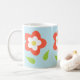Bright and cheery red bubble flowers on a light blue background. Mug with blue interior (various colors available)