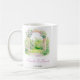 This beautiful and elegant wedding mug with a floral arch and pink purple flowers. Perfect for a spring or summer wedding. The words can be changed to suit your own details or requirements