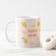 Brighten your morning with this charming lemon-themed mug, designed to bring a little sunshine to every sip. Set against a soft blush background, cheerful lemons, citrus slices, and delicate florals create a lighthearted, happy pattern that feels fresh and uplifting. The playful “Squeeze the Day” message adds just the right touch of motivation without taking itself too seriously.