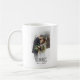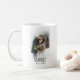 Esta taza recién casada incluye letras a mano de Mr. y Mrs. font junto con una foto.