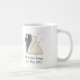 Delicioso ilustracion con una novia y un novio, personalizado con su nuevo apellido de casado y la fecha de su boda. Al revés de la taza dice '¿Cásate conmigo?', preguntó, SÍ, SÍ, SÍ, respondió.