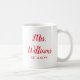 mrs personalizada marca tu fecha, regalo de compromiso para boda de novia, regalo para boda de novia, monograma apellido recién casado moderno, fiesta de soltera mrs recién casada, ducha de novia recién casada, adorable Navidad tipografía roja y blanca, regalo de cumpleaños de novia mug, personalizado personaliza su copa de caligrafía, recién casada escritura simple roja de moda