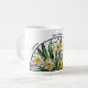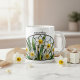 Celebrate December with this Narcissus stained glass-inspired mug. White flowers with soft yellow centers glow in a circular design. Not real stained glass, printed on ceramic. Add a personalized name and flower meaning (“Hope”) for birthdays or keepsakes.