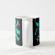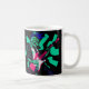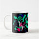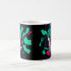 Un esqueleto robótico con un mohawk azul estilo punk toca una guitarra eléctrica rosa brillante que emite ondas de energía eléctrica cuando se toca. el robot usa una chaqueta de cuero negro.