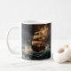 El galeón de un pirata clásico es arrojado y arrojado en mares tormentosos mientras el relámpago golpea al mástil. Una imagen brillante para los que aman los barcos del pasado y los barcos de la era dorada de la navegación.