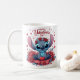 Una taza adorable con Stitch con corazones y diseños con temas de amor, perfecto para celebrar el Día de San Valentín!