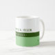 Bonito café-taza verde y blanco personalizado con nombre y profesión (paisajista)