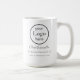 Una gran taza de negocios con su logotipo, nombre de personalizable, nombre de su empresa y cualquier lema o información adicional que desee añadir. La decoración es de color blanco y negro. Simplemente agrega tu información, agrega esta taza a tu carrito, y bebe tu café a medida que te diriges a los negocios.