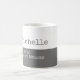 Una taza de café femenina rosa y blanca personalizada con nombre y profesión
