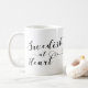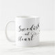 Sueco En Heart Mug. Tanto si eres sueco-estadounidense, sueco-canadiense, sueco-australiano o tienes ascendencia sueca, o si tienes familia o amigos suecos, o si simplemente amas todo sueco! Este elegante diseño de guiones tiene un pequeño corazón con la bandera sueca.