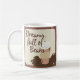 Una bebida caliente al estilo personalizado lindo y divertido delicioso mocha café sueños lleno de frijol slogan de café divertido tazón de bebida caliente diseño sabroso java junkie de café amante de café latte bebida divertida café de lujo té de café o tazas de cacao. Consigue un eslogan personalizado épico hoy.