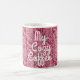 Un acogedor diseño de suéter de punto de cable para envolver tu taza de café. Dice "Mi café acogedor" pero puede ser personalizado o retirado.