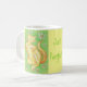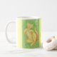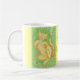 Un felino de tabby amarillo feliz revoloteando sobre el césped bajo el sol. con un diseño de personalizable amarillo, naranja, verde, blanco y azul para que usted lo pueda personalizar con sus propios textos, fotos e ideas. Dibujo original de Jess Perry a lápiz de color.