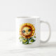 This ceramic coffee mug is shown with a cute sunflower cutie print.